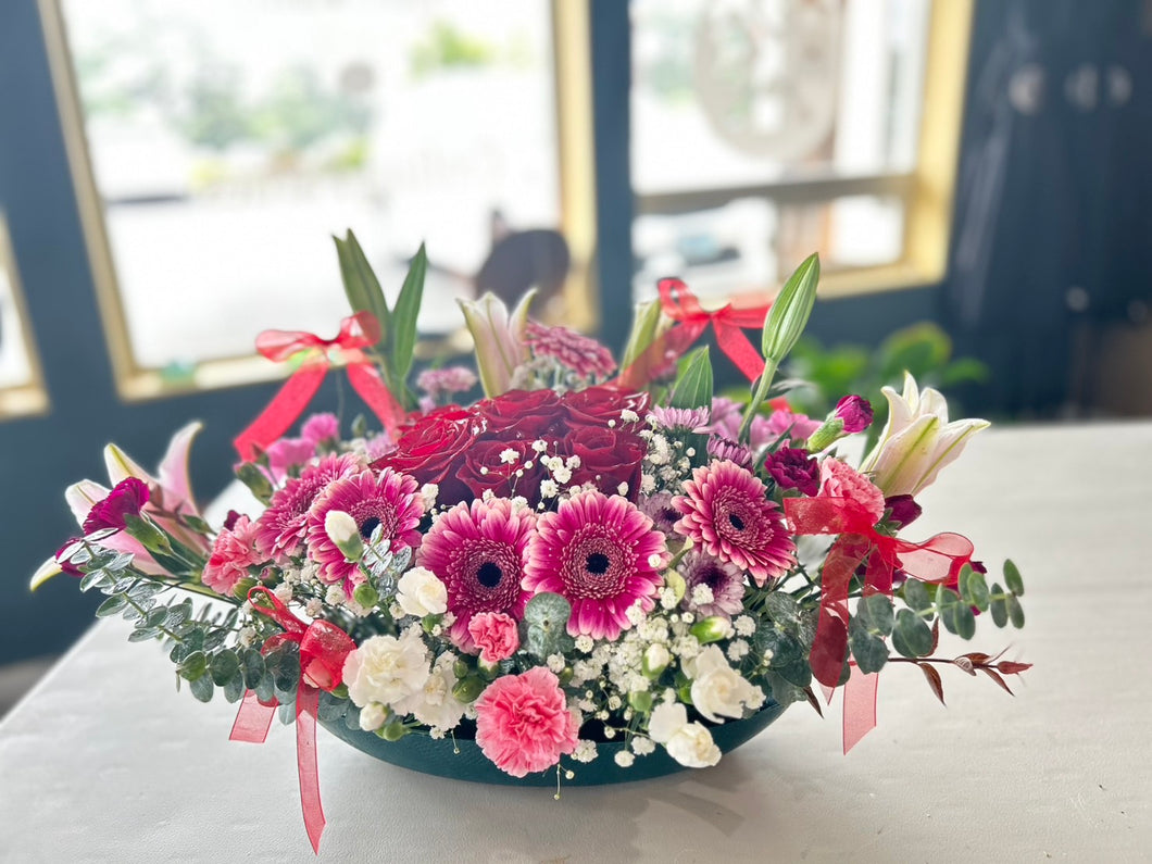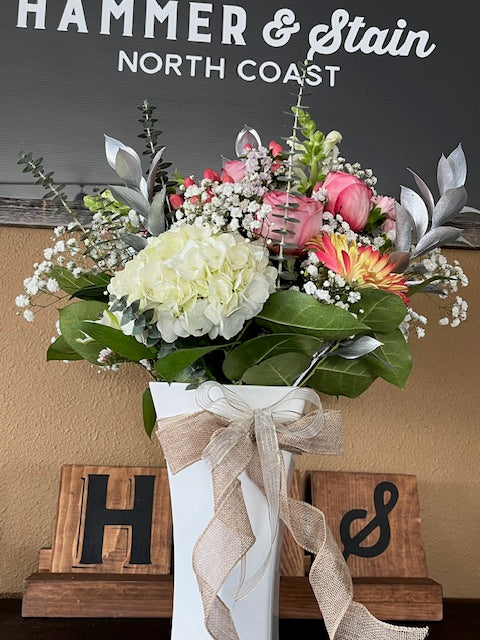 Our exquisite floral bouquets are designed to bring a touch of nature's beauty into your home or office. Each bouquet is uniquely and carefully crafted with fresh, vibrant blooms that reflect the season's charm and are locally delivered in a vase with a personalized note.